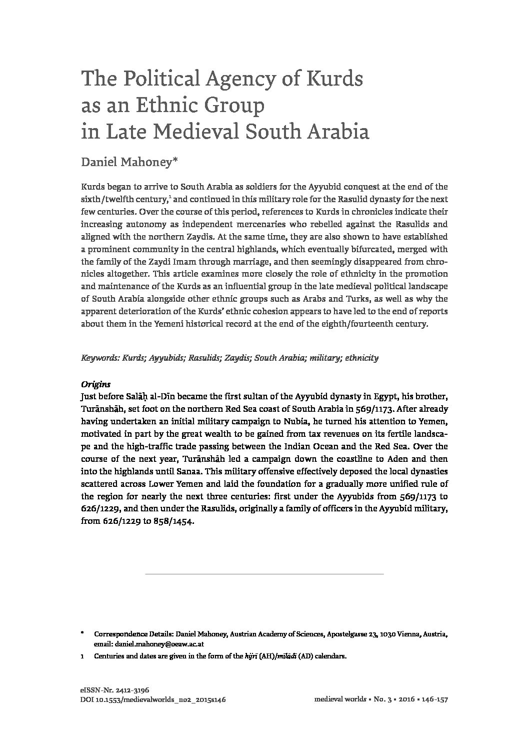 The Political Agency of Kurds as an Ethnic Group in Late Medieval South Arabia
